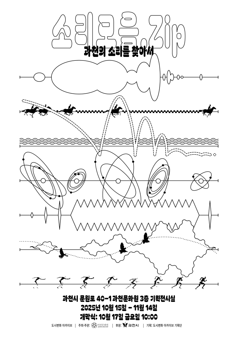 「과천문화원」 도시변화 아카이브 전시 《소리모음.Zip》초대합니다. ◇전시간 : 10월15일(수) ~ 11월14일(금) ◇개막식 : 10월17일(금) 10시 ◇전시 : 과천문화원 3층 기획전시실 ◇접수 및 문의 : 02-3679-1414